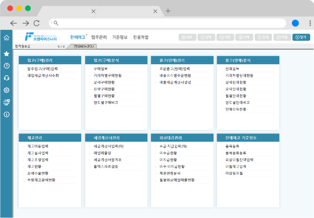 - 장소와 장비에 상관없이 프랜차이즈나라 전용 웹/앱을